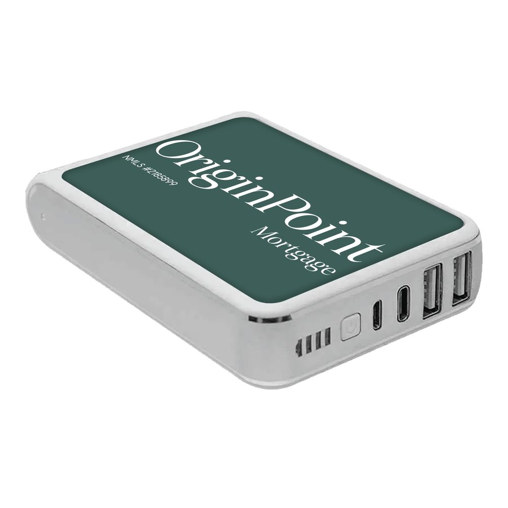 Practical and stylish, this high-capacity power bank is ready to charge you up. Loaded with three USB outputs, a 3.1 amp charging speed, and a 10,400mAh battery capacity, it charges up to three devices at once to completion with room to spare. Its full-color imprint area is the perfect space for your brand to make its statement. Copy that? Ten four.